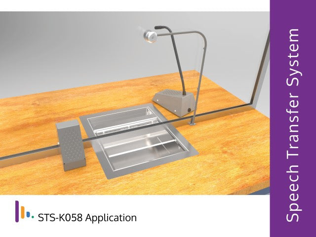 The STS-K058 Window Intercom System provides assistance for clear communication where normal speech is impaired by use of glass, a security screen or other similar barriers. This window intercom system features a bent vandal-proof glass mounted microphone for the customer side, along with a surface mounted customer speaker. For the staff, the STS-SU1 combined microphone and speaker unit has an adjustable neck and features a mute switch. The kit comes with an IL-AE99 under the counter hearing loop aerial. Easy to follow installation instructions are included.